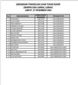 Dengan hormat, kami mengundang Saudara/i untuk menghadiri Ujian Tugas Akhir yang akan diselenggarakan oleh FISIP UMSU.